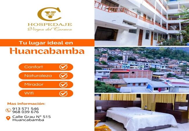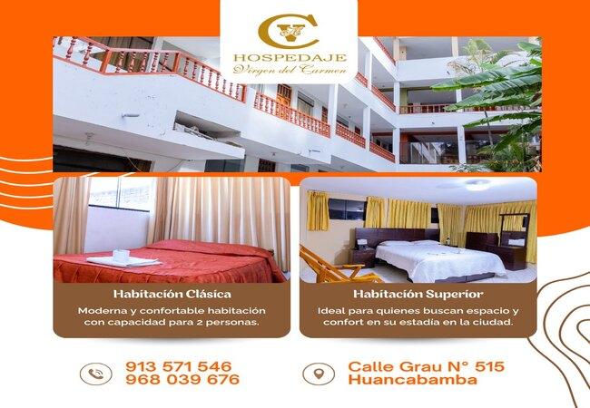 Te damos la bienvenida a Hospedaje Virgen del Carmen. Estamos encantados de ser tu elección para disfrutar de la tranquilidad y belleza de Huancabamba. Ofrecemos un alojamiento cómodo, económico y cercano a los principales puntos turísticos. ¡Esperamos que tu experiencia con nosotros sea inolvidable!