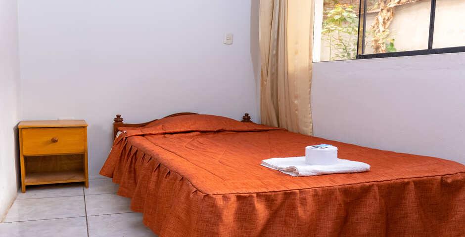Económica y cómoda, con una cama individual y acceso a baño compartido. Ideal para viajeros que buscan una opción práctica y segura en el centro de Huancabamba. Amenidades: