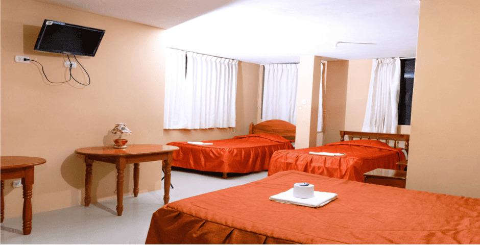 Amplia y funcional, con tres camas personales y baño privado. Ideal para grupos o familias que buscan comodidad y espacio a buen precio. Amenidades: